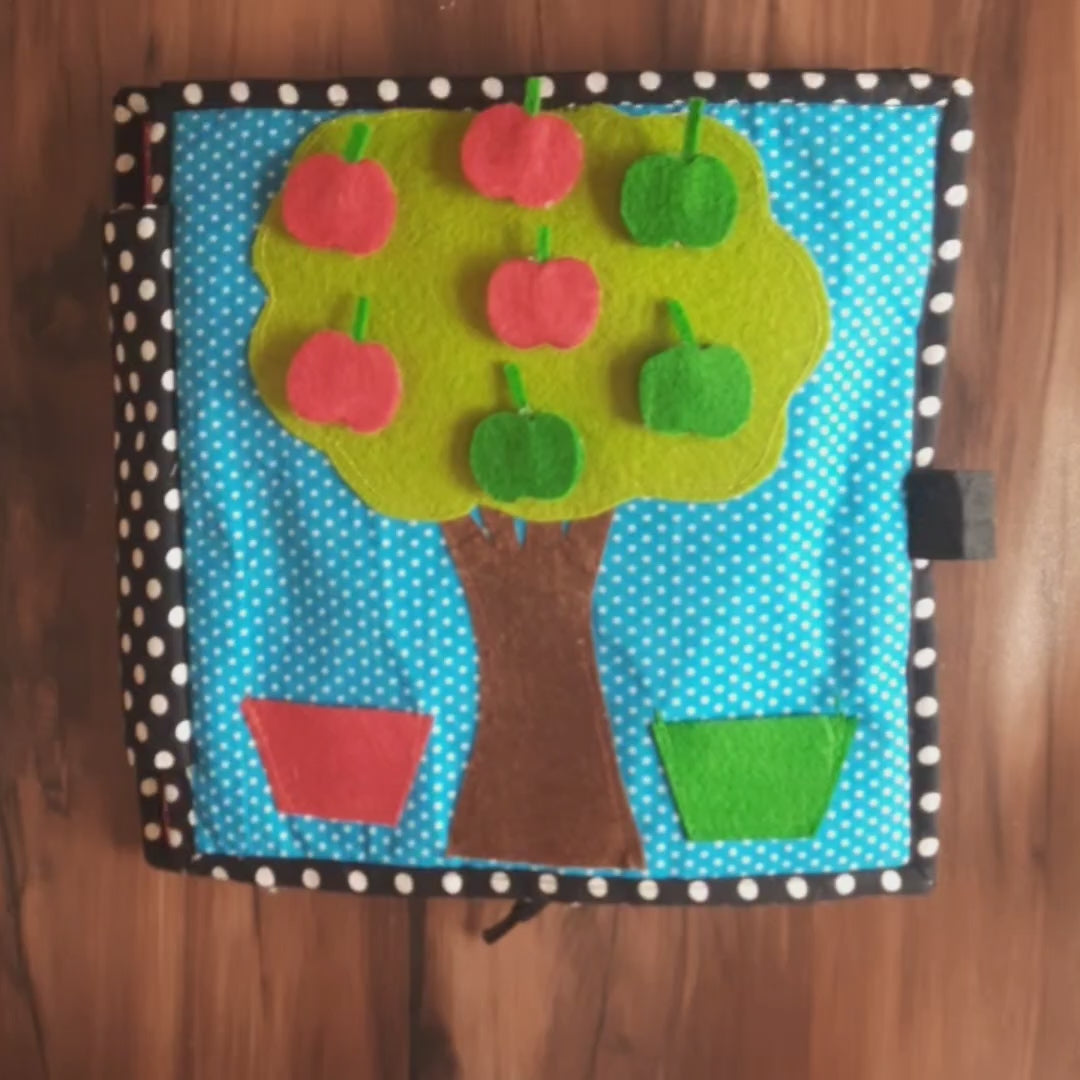 Efficiently pluck and sort apples with ease using this busy book activity. Perfect for developing fine motor skills and teaching object recognition. Enjoy a fun and educational experience while also engaging in sensory play. A must-have for any little ones.